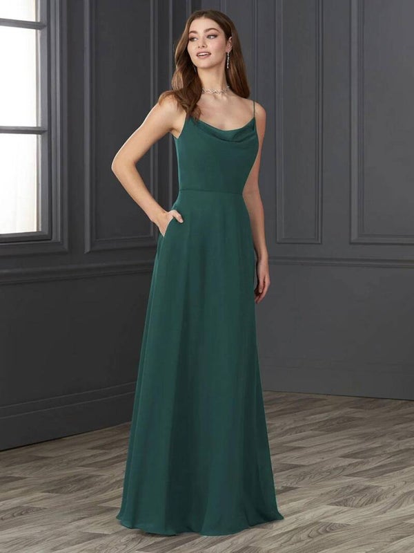 Robe de demoiselle d'honneur en mousseline de soie longueur au sol