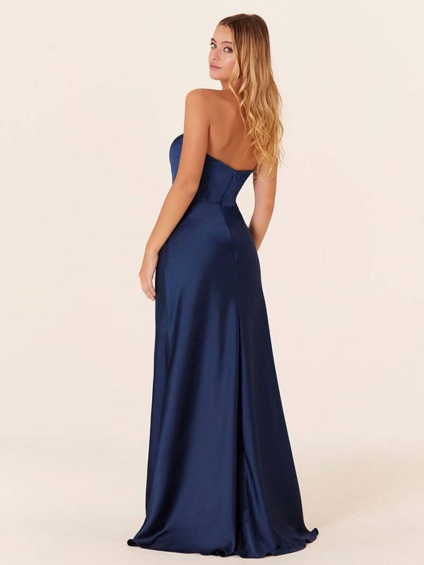 en satin bustier zip sur dos fendue devant longueur au sol